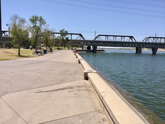 Grab a kayak and get out on Tempe Town Lake!This is the view Edgewater condos have of Tempe Town Lake.Grab your bike or rent one and enjoy the miles of biking paths along the lake.The Light Rail tracks pass over Tempe Town Lake. Yep, that means the light rail station is close!