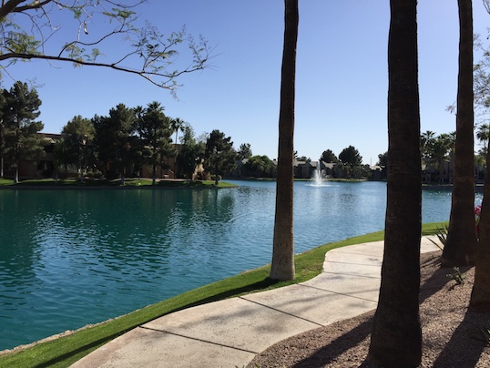 Enjoy a lake view with your condos at Lakeshore at Andersen Springs in Chandler. Almost half of the residents here can enjoy a view of Anderson Springs Lake while others have a pool view. Even if you don't have a view, you can enjoy a stroll by the lake and watch the ducks that make their home here. After you enjoy your side of the lake, you can head to the other side and enjoy outdoor seating by the lake at one of several restaurants.